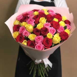 Из 51 розы можно сделать очень пышный и эффектный букет секрет кроется в оформлении. Мы предлагаем вам выбрать цвет роз самостоятельно на сайте при оформлении заказа. Это может быть однотонная композиция или микс из нескольких оттенков. Наши флористы сделают профессиональное оформление, чтобы букет стал еще шикарнее. Длина стеблей средняя – 60 см.